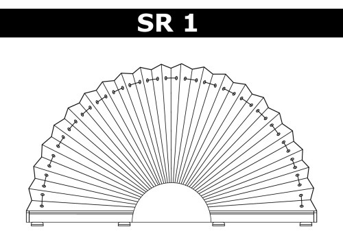 SR1 – нерухома система, призначена для арочних вікон. Може мати як правильну (коли висота дорівнює половині ширини), так і неправильну форму. Фіксування конструкції відбувається в її центральній частині. |