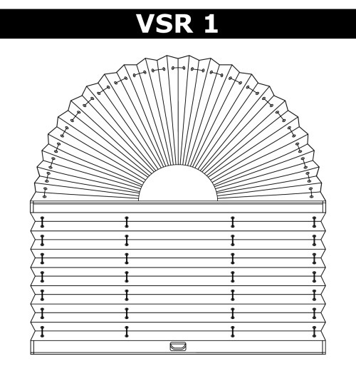 VSR1 - система, призначена для закриття вікон складної форми. Верхня частина конструкції має форму арки і залишається нерухомою, а нижня – рухома. Фіксування верхній частині конструкції відбувається в її центральній частині. Нижня частина конструкції, що представляє собою систему з одним нижнім рухомим профілем. Верхній профіль закріплений. Ручка управління розташовується на рухомому профілі. При ширині понад 80 см – 2 ручки на рухомому профілі. |