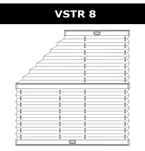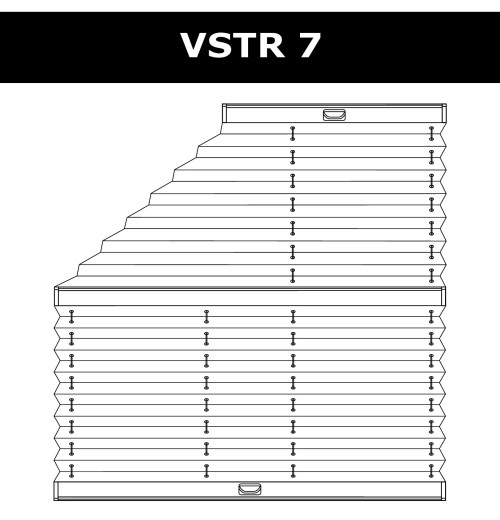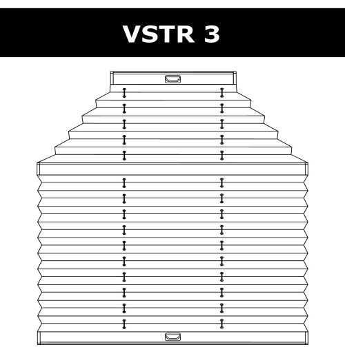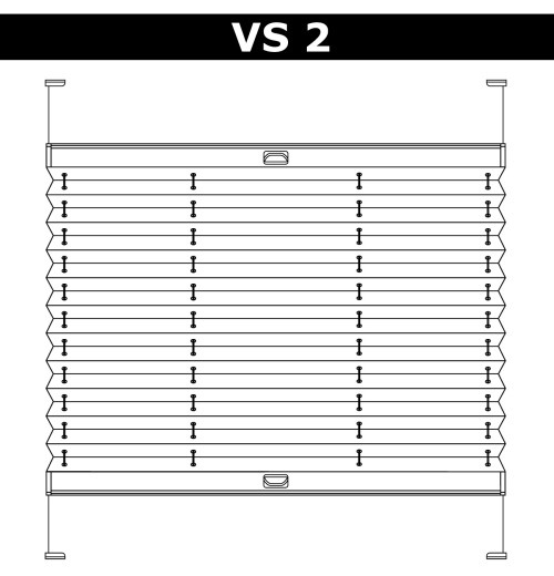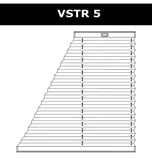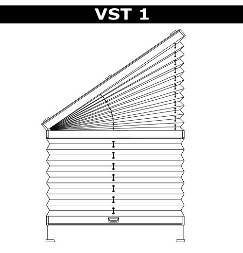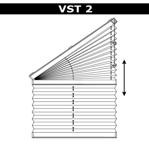 VST2 – система для вертикаль йных вікон нестандартної форми. Верхній карниз зафіксовано. Вся система управляється за допомогою шнурового механізму, розташованого у верхньому профілі. Управління відбувається так: спочатку піднімається нижня частина, потім верхній. Максимальний кут розкриття трикутника до 45°. |