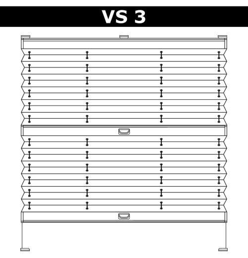 Cosimo VS3 – система передбачає використання двох тканин, має три профілю, два з яких рухливі і один зафіксований. Ручки управління розташовуються на рухомих профілях. При ширині понад 80 см – ручок буде по 2 на кожному рухомому профілі. |