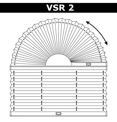 VSR2 – система, призначена для закриття вікон складної форми. Верхня частина конструкції рухома, при цьому арка може бути тільки правильної форми. Нижня частина конструкції, що представляє собою систему з одним нижнім рухомим профілем. Верхній профіль закріплений. Ручки управління розташовуються на рухомих профілях. При ширині понад 80 см – 2 ручки на рухомому профілі. Фіксування конструкції відбувається в її центральній частині. |